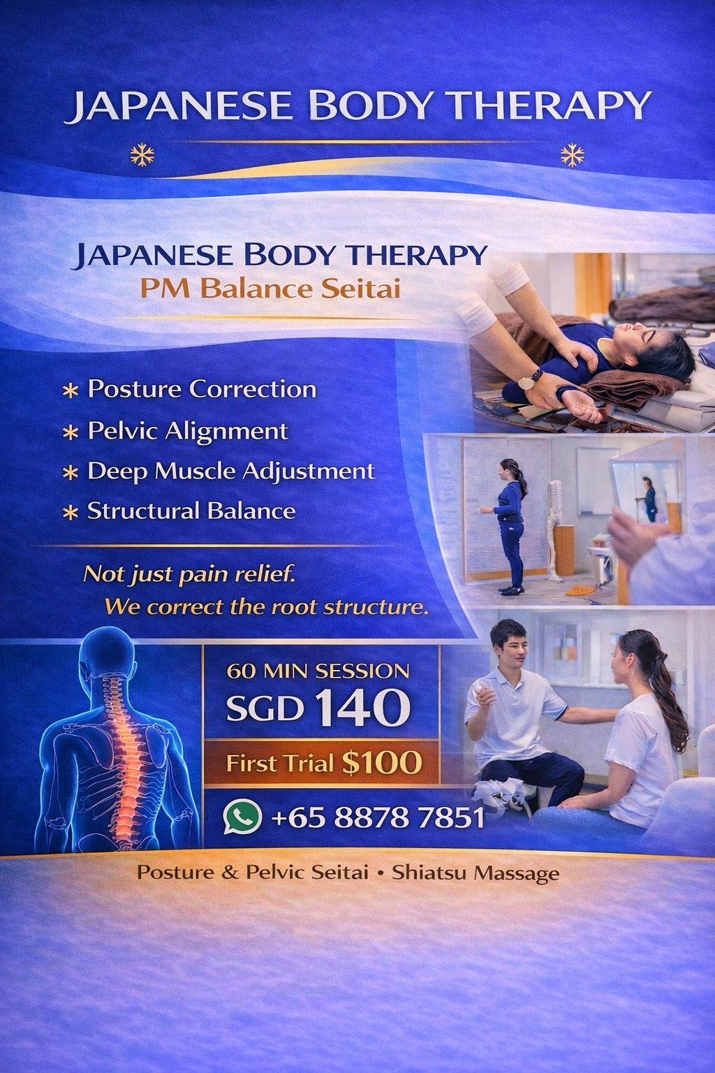 Description JAPANESE BODY THERAPY is a structure-based body therapy concept, originated in Japan and established in Singapore, addressing posture and body-balance issues that are increasingly common in modern daily life.