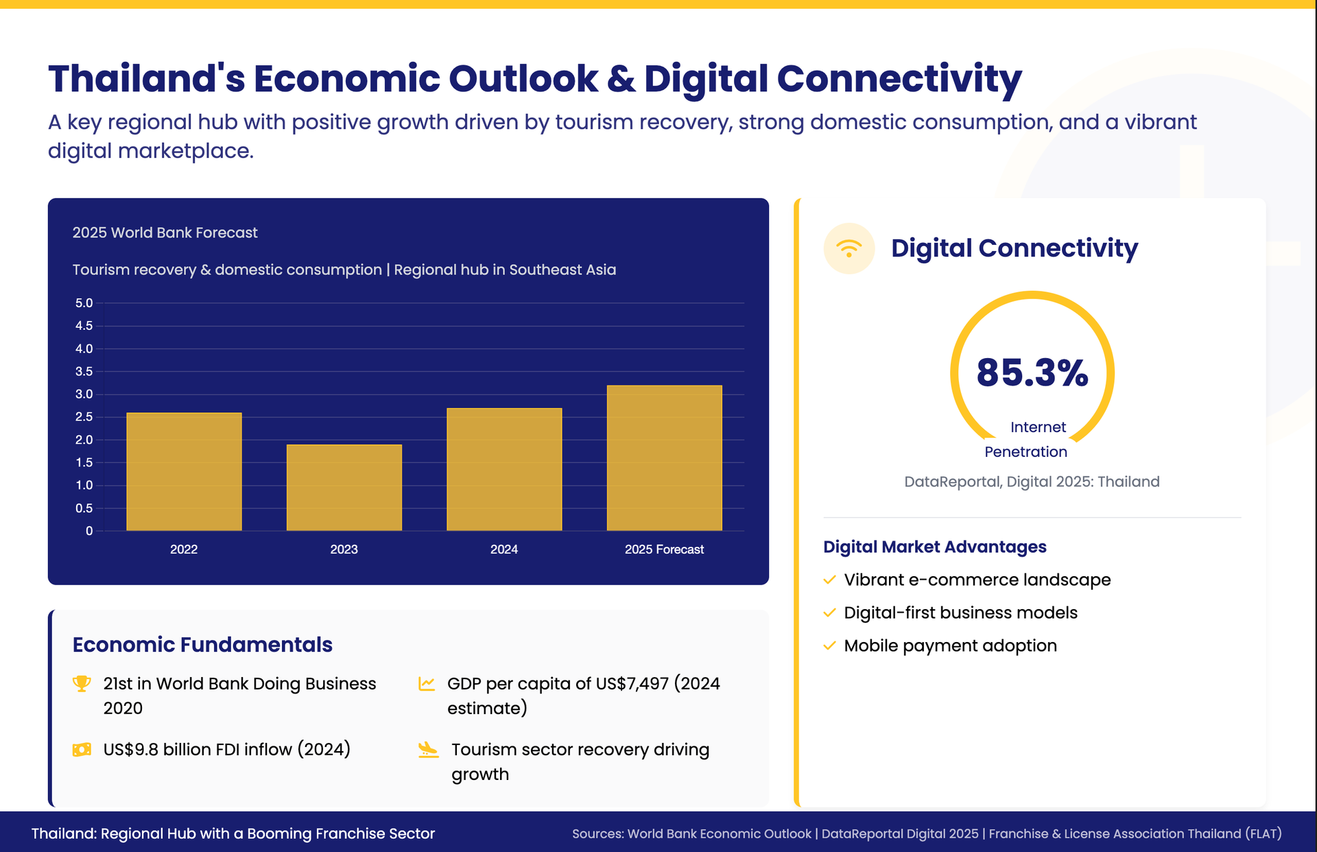 The FLA plays a crucial role in nurturing homegrown Thai brands for both domestic scale-up and international expansion, while also helping global brands understand and access the dynamic Thai market. The Association actively supports major franchise and business events in Thailand—including the “Thailand Franchise & Business Opportunities (TFBO)” expo—as a strategic partner, rather than an organizer. Beyond TFBO, the FLA collaborates with a wide range of exhibitions, seminars, and promotional activities that highlight its members and strengthen the franchise community nationwide. It also serves as a key representative body for Thai franchises in working with government agencies and private sector organizations, advocating for supportive policies and collaborative initiatives that reinforce the sector’s contribution to the national economy.