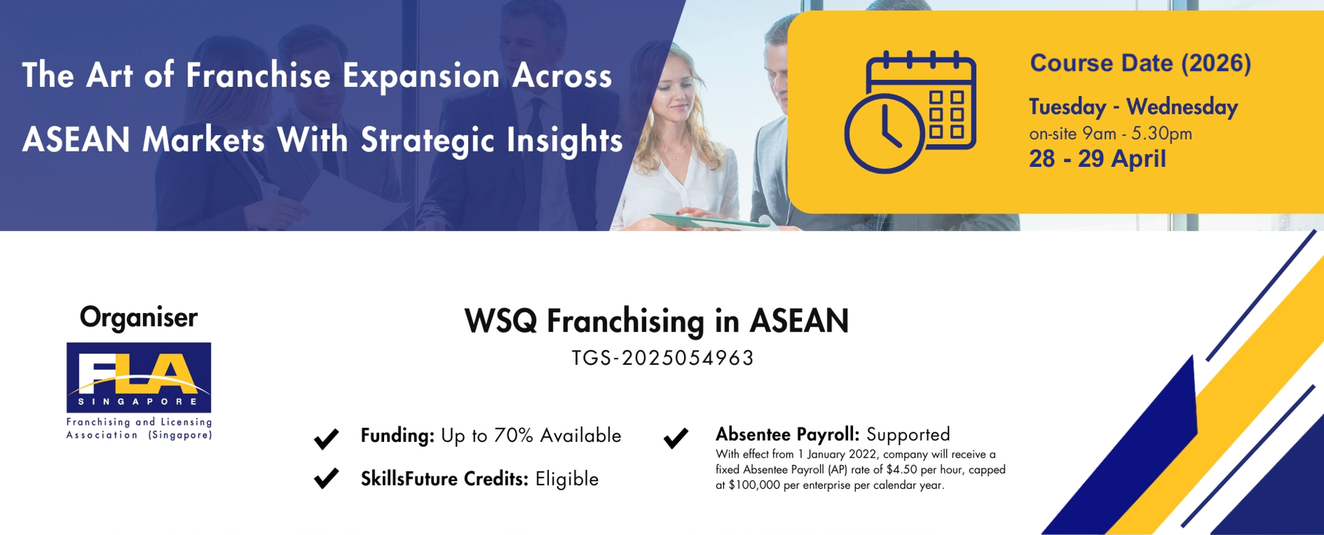 Through a blend of real-world case studies, expert discussions, and hands-on activities, you will gain the practical insights needed to successfully expand your franchise across ASEAN.