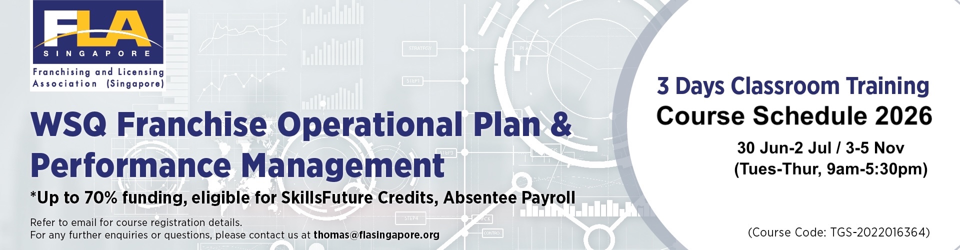 This course is targeted at franchise owners and operators, existing or aspiring franchisors, and any business owner or executive involved in business operations and management. These are mostly Professionals, Managers and Executives (PMEs) who are working in franchisable business concepts. Their job functions may include operations, manufacturing, supply chain management, sales and marketing, business development, finance, legal, human resource management, training and overall company management.