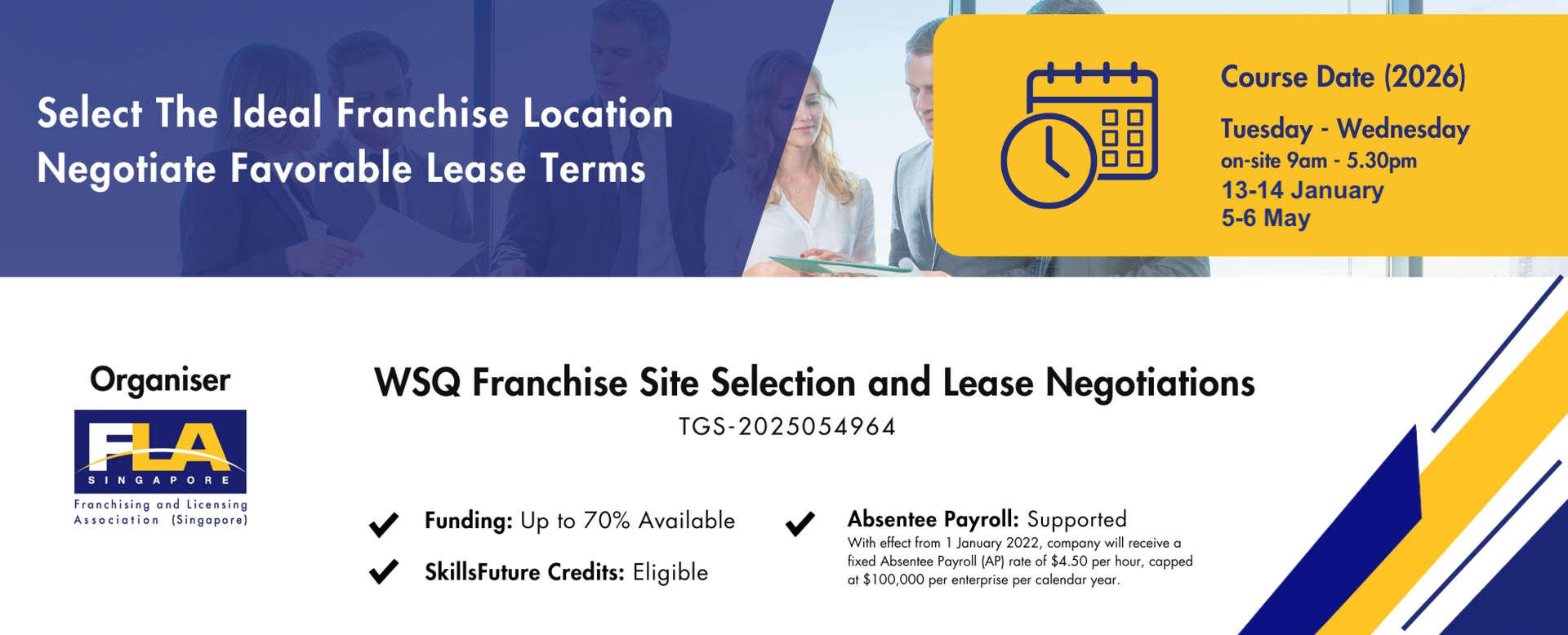 Your franchise's success starts with the right location. Our 2-day WSQ course provides the essential skills to select strategic sites and secure favourable leases that drive your business expansion.
