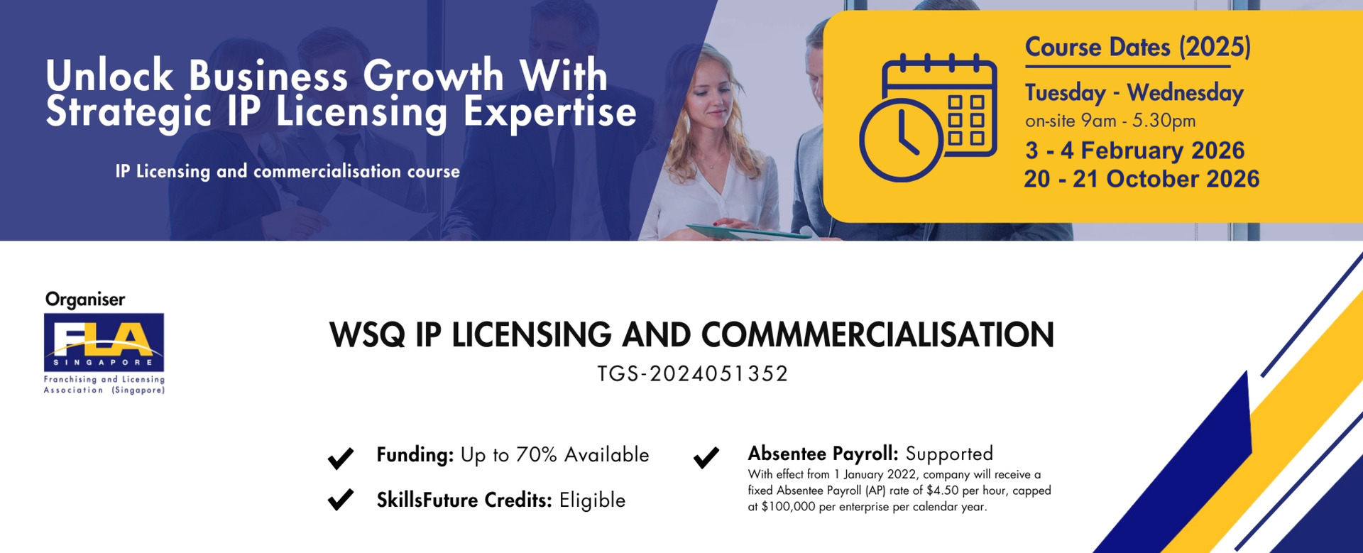Don’t let untapped intellectual property potential hold your business back. Join the WSQ IP Licensing and Commercialisation Course to unlock new revenue streams, protect your assets, and expand your business.