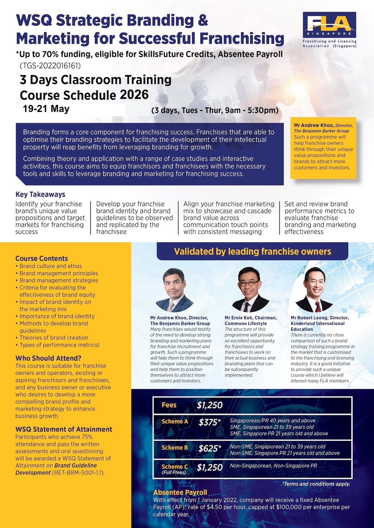 - Equipping learners with the essential knowledge and skills to articulate the franchise brand’s unique value propositions, target markets, brand identity, marketing mix and brand performance metrics for franchising success.